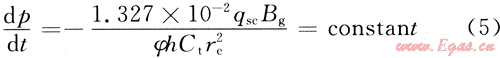 根據(jù)滲流力學(xué)理論,對(duì)于封閉氣藏中定產(chǎn)生產(chǎn)井,當(dāng)處于擬穩(wěn)定流動(dòng)時(shí),在任意一點(diǎn)處有: