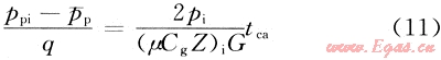 由式(14)可知,△pp/q與tca在直角坐標(biāo)系中呈直線關(guān)系。因此,根據(jù)重整壓力(△pp/q)與擬等效時(shí)間(tca)關(guān)系曲線的直線段斜率(ma)可反求氣井可動(dòng)儲(chǔ)量(G),其表達(dá)式如下: