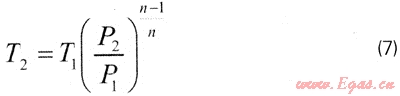 由式(6)求出絕熱非等熵過(guò)程的指數(shù)n后,便可由下式算出膨脹降壓后天然氣的溫度[12]: