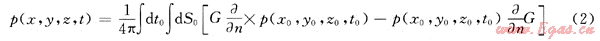 式中:p(x,y,z,t)為閉合曲面S0上某個觀測點(diǎn)R(x,y,z)處的波場函數(shù)值;p(x0,y0,z0,t0)為閉合曲面S0上某個觀測點(diǎn)R0(z0,y0,z0)處的波場函數(shù)值;n為閉合曲面的外法線方向;G為格林函數(shù)。