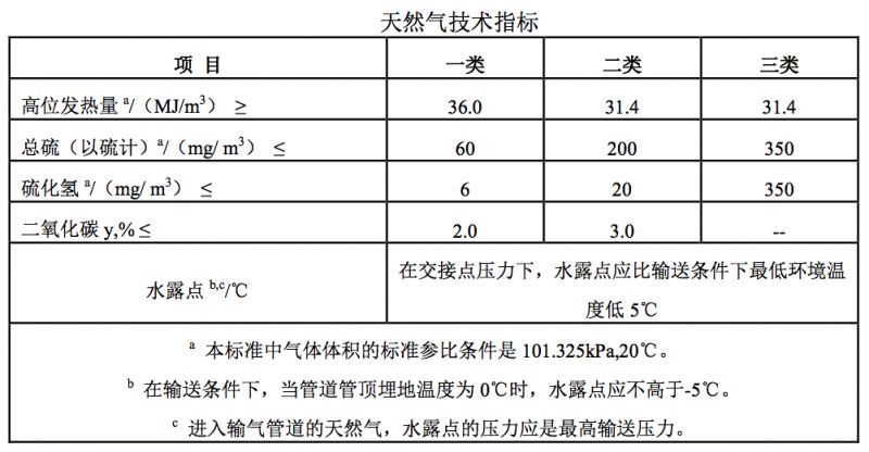 國家標(biāo)準(zhǔn) GB17820-2012《天然氣》中對天然氣的熱值進(jìn)行了規(guī)定: