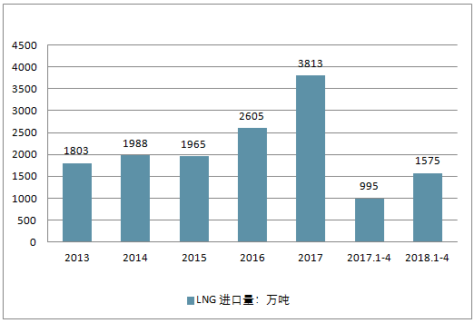 2013-2018年我國(guó) LNG 進(jìn)口量(單位:萬噸)