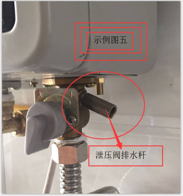 圖五:熱水器泄壓閥排水桿示意圖