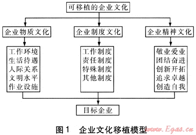 事實證明,買到技術(shù)、產(chǎn)品和服務(wù)易如反掌,而要重復(fù)一個企業(yè)的文化和經(jīng)營方式則極為困難。因此,燃?xì)馄髽I(yè)在合資、兼并收購其他企業(yè)后,要成功移植企業(yè)的優(yōu)質(zhì)文化,需要經(jīng)歷一個比較艱難的過程。結(jié)合企業(yè)文化的內(nèi)容,企業(yè)文化擴張方式應(yīng)該是建立在企業(yè)精神的基礎(chǔ)上,以完整的管理制度為依托,以鮮明的企業(yè)形象為載體,符合目標(biāo)消費群的精神和物質(zhì)需要[5]。企業(yè)文化移植模型見圖1。