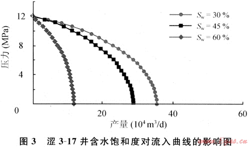 預測澀3-17井在不同地層含水飽和度時的流入曲線如圖3所示。