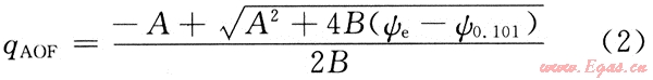 根據(jù)(ψe-ψwf)/qg-qg的直線關系處理產(chǎn)能測試數(shù)據(jù),得到方程系數(shù)A與B,無阻流量的計算公式為: