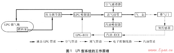 ① LPG以液態(tài)形式噴射進入發(fā)動機氣缸,其液態(tài)噴射量可以精確控制,因此發(fā)動機空燃比得到優(yōu)化。