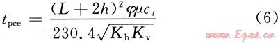 對于式(5),t0可理解為水平井開井生產(chǎn)至垂直平面徑向流結(jié)束時(shí)間,記為tpce;r0為擬圓形坑道外緣半徑,記為rpce。關(guān)于tpce的確定,利用Giger等人提出的等效滲透率的方法[4],并結(jié)合式(1)以及tpce的表達(dá)式可以容易得出: