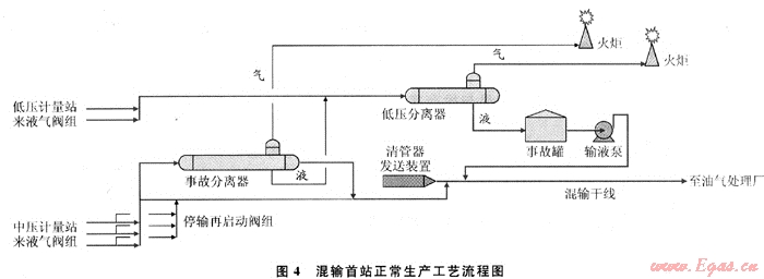 4.3 首站與混輸干線事故流程狀態(tài)正常