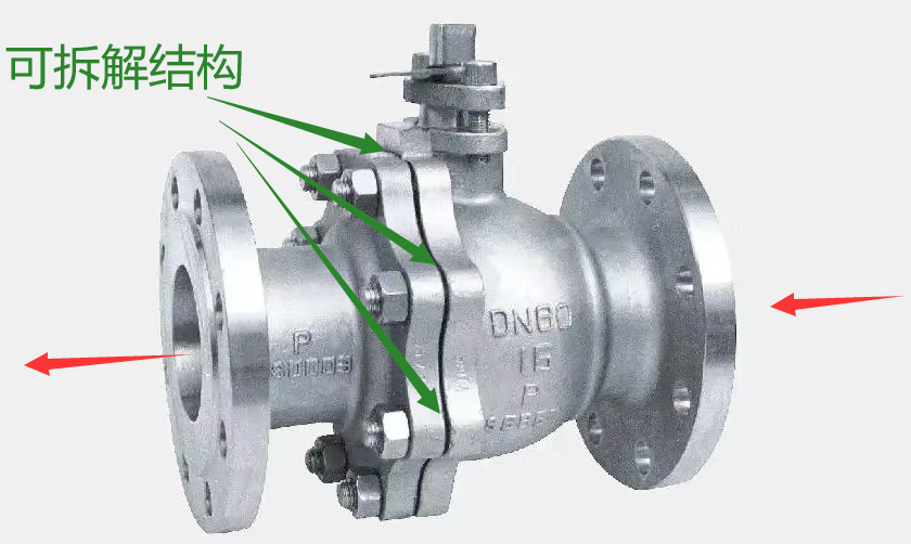 如果上述的球閥安裝方向分正反的話,那這種常見的球閥我想是不是也該按紅色箭頭安裝方向進行安裝。因為右側(cè)也是一個可拆解的結(jié)構(gòu)(猜測很難拆解,但維修過閥門的都知道,另外閥門本體此處泄漏的可能性有多少?)。