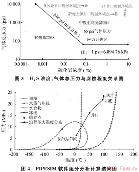 薩曼捷佩氣田由于富含H2S和CO2(分別高達2.988%和3.588%),計算得到H2S及CO2的井筒分壓約為0.704MPa和0.845MPa(見表2)。