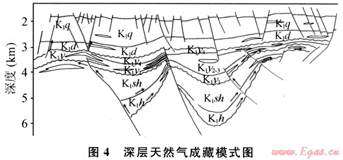以沙河子組為主力生氣層,深層發(fā)育兩大含氣系統(tǒng):下部含氣系統(tǒng),以泉頭組一、二段泥巖為區(qū)域蓋層,登婁庫組、營城組、沙河子組及火石嶺組和基底組為儲層;上部含氣系統(tǒng),以青山口泥巖為區(qū)域蓋層,泉頭組三、四段砂巖為儲層。前者主要以原生氣藏為主,深層天然氣主要分布于該含氣系統(tǒng)中;而后者主要以次生氣藏為主,主要分布于受白堊紀末-古近紀改造作用強烈的斷陷中。下部含氣系統(tǒng)發(fā)育3套含氣組合,以營城組火山巖為儲集層、營城組火山巖及登二段泥巖為蓋層的儲蓋組合為主要含氣組合,勘探潛力大,已發(fā)現(xiàn)的氣藏有徐家圍子斷陷興城、升平氣田、長嶺斷陷長嶺1號氣田等。