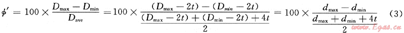 套管磨損后,有:dmax=d+tm,dmin=d,d=D-2t,代入上式,最后得到:
