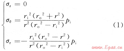 套管在井下情況的受力較為復(fù)雜,為了分析方便,主要考慮套管受內(nèi)壓和外擠作用(即管內(nèi)外壓差),而忽略軸向力和溫度對管柱應(yīng)力的影響時,套管屬于中厚壁管(圖1)。