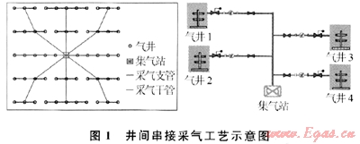 針對蘇里格氣田“三低”特點,科研人員積極探尋集氣工藝新模式——即充分利用井下節(jié)流工藝創(chuàng)造的條件,實現(xiàn)了井口不加熱、不注醇、采氣管道不保溫的中低壓集氣工藝技術。該工藝主要是對井口到集氣站的集輸系統(tǒng)進行了簡化,優(yōu)化了集氣工藝。井口既沒有加熱爐,也沒有注醇系統(tǒng),井口及采氣管道均不需要保溫、注醇,簡化了水合物防治工藝。