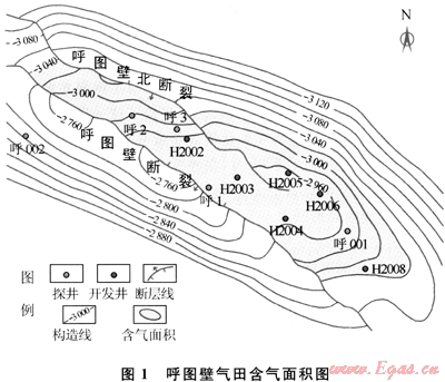 1996年,呼2井射開紫泥泉子組獲日產天然氣78.3×104m3、凝析油18.82m3的高產油氣流,從而發(fā)現(xiàn)了呼圖壁氣田。于1998年10月投入試采,2000年全面投入開發(fā),共有氣井7口,動用含氣面積15.2km2,動用天然氣地質儲量126.12×108m3。