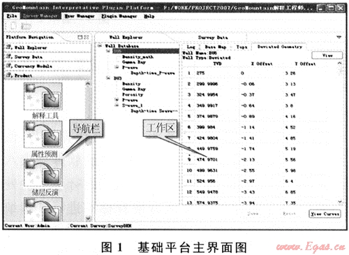 當(dāng)前,地震解釋軟件種類較多,國外的有大型地震綜合解釋LandMark軟件系統(tǒng)、微機(jī)一體化油藏描述的Discovery軟件系統(tǒng),地震微機(jī)解釋軟件包SMT,斯倫貝謝公司的勘探開發(fā)一體化軟件包Geoframe系統(tǒng),OpendTect軟件系統(tǒng)。國內(nèi)有處理解釋一體化的GeoEast軟件系統(tǒng)[1],雙狐微機(jī)解釋系統(tǒng)等。LandMark軟件主要有OpenWorks軟件平臺和各個應(yīng)用程序組成,應(yīng)用程序都是OpenWorks的插件,均運(yùn)行于OpenWorks環(huán)境下,受它管理,遵循其設(shè)置的規(guī)則和標(biāo)準(zhǔn),所有應(yīng)用程序產(chǎn)生的各類數(shù)據(jù)包括地質(zhì)、地震、測井、人文4大類數(shù)據(jù),均存儲于OpenWorks數(shù)據(jù)庫中,形成了一個統(tǒng)一的數(shù)據(jù)體。盡管如此,在插件的管理方面,開發(fā)人員仍不能方便地進(jìn)行插件安裝和卸載。而OpendTect軟件具有很好的插件機(jī)制,主要由基礎(chǔ)環(huán)境以及在此基礎(chǔ)上運(yùn)用高級插件技術(shù)(Plugin)開發(fā)的功能模塊組成,但在數(shù)據(jù)平臺方面又有所欠缺。.結(jié)合四川山地物探的研發(fā)模式,探索一套基礎(chǔ)平臺加功能插件的軟件架構(gòu)設(shè)計(jì),使該解釋平臺(即GeoMountoin軟件系統(tǒng))較好地解決軟件開發(fā)與集成,使之具有很好的擴(kuò)展性。