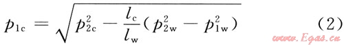 式中p1c為室內(nèi)氣竄試驗(yàn)中低壓排放壓力,MPa;lw為井眼內(nèi)額定長(zhǎng)度水泥漿柱高度,30.48m;p2w為高壓氣層壓力;MPa;p1w為最近氣層第一段30.48m長(zhǎng)水泥漿柱上部液柱壓力,MPa;lc為試驗(yàn)儀器內(nèi)水泥漿柱高度,0.1524m;p2c為注塞壓力,2.8MPa。
