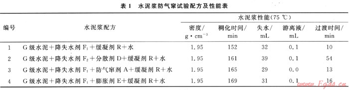 2 氣竄水泥漿配方實(shí)例