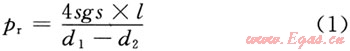 式中pr為用于克服靜膠凝強(qiáng)度的壓力,Pa;sgs為靜膠凝強(qiáng)度,Pa;l為水泥漿柱長(zhǎng)度,m;d1為井眼直徑,m;d2為套管直徑,m。