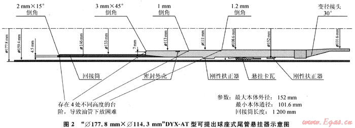 2) 懸掛器入井座掛后,除上面提到的11.21mm的臺(tái)階,內(nèi)壁還存在10mm(3×45°倒角)、1mm和1.2mm共3個(gè)臺(tái)階(圖2),即使油管喇叭口順利進(jìn)入懸掛器回接筒,在穿越懸掛器過(guò)程中也存在較大遇阻、遇卡風(fēng)險(xiǎn)。