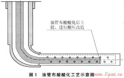 2007年以前,靖邊氣田重點(diǎn)采用了水平段油管布酸酸化+酸壓改造工藝(圖1),在2口水平井進(jìn)行了現(xiàn)場(chǎng)試驗(yàn),其改造效果較好。