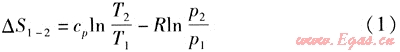 式中△S1-2——氣體膨脹過程的熵增,J/(mol·K)