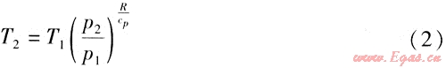 T2——膨脹后的氣體溫度,K