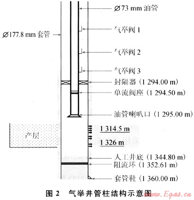 4) 管柱結(jié)構(gòu)為閉式氣舉管柱,管柱可靠,有利于作業(yè)施工過(guò)程中的油層保護(hù)和管柱狀況檢查。