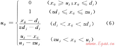 式中:zdj為指標(biāo)的中值區(qū)間(即理想值區(qū)間)下限,zui為指標(biāo)的中值區(qū)間(即理想值區(qū)間)上限。