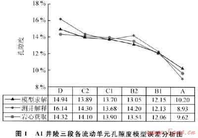 崖城13-1氣田開發(fā)時期較長,對于孔隙度模型的研究一直未停止。A1、A2、A8井在儲層段采用低侵取心技術(shù)進(jìn)行全井段取心,收獲率高,巖心具有代表性。因此,以生產(chǎn)井巖心、三孔隙度測井曲線為基礎(chǔ),分流動單元建立孔隙度計算模型。