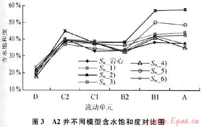 常規(guī)電法測井計算的全氣田的含水飽和度約為36%,而按照流動單元建立的模型6)計算含水飽和度約為29%,地質(zhì)儲量差異約80×108m3。