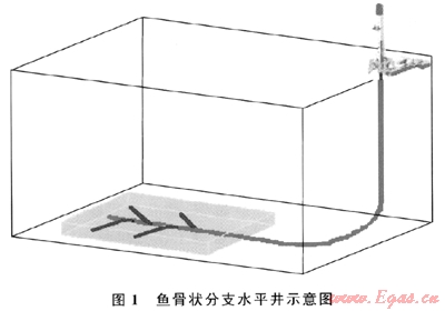 我國煤層氣資源量豐富,煤層滲透率介于0.1~0.001mD,屬于低滲透煤儲層,致使煤層氣開采效果難如人意[1~2]。魚骨狀分支水平井是指在一個主水平井井眼兩側(cè)再鉆出多個分支井眼作為通道的井眼軌跡形態(tài)(圖1)。由于魚骨狀分支井在主水平井眼兩側(cè)具有多個分支,能顯著增加煤層裸露面積、提高開發(fā)效率,對于低滲透煤層氣的開發(fā)具有重要意義。