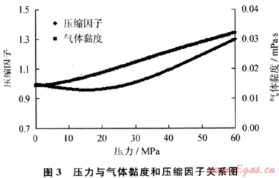 選取均質(zhì)頁巖氣藏中心的1口壓裂井,地層參數(shù)如下:絕對(duì)滲透率(K∞)為0.01mD 、有效厚度(h)為100m、氣井半徑(rw)為0.1m、氣藏邊界半徑(re)為250m、氣藏溫度(T)為100℃,頁巖氣相對(duì)密度(γ)為0.62,其中頁巖氣黏度(μ)和壓縮因子(Z)根據(jù)其組分及儲(chǔ)層溫度分別采用Hall-Yarborough法和Carr-Burrows圖版法獲得[8](圖3)。