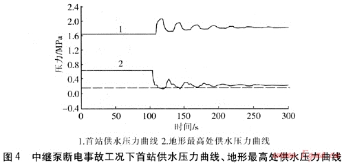 CJJ 34—2002《城市熱力網(wǎng)設(shè)計(jì)規(guī)范》第7.2.9、7.2.10條規(guī)定:“動(dòng)態(tài)水力分析應(yīng)對(duì)循環(huán)泵或中繼泵跳閘、輸送干線主閥門非正常關(guān)閉、熱源換熱器停止加熱等非正常操作發(fā)生時(shí)的壓力瞬變進(jìn)行分析。動(dòng)態(tài)水力分析后,應(yīng)根據(jù)分析結(jié)果采取下列相應(yīng)的主要安全保護(hù)措施:設(shè)置氮?dú)舛▔汗?;設(shè)置靜壓分區(qū)閥;設(shè)置緊急泄水閥;延長主閥關(guān)閉時(shí)間;循環(huán)泵、中繼泵與輸送干線的分段閥連鎖控制;提高管道和設(shè)備的承壓等級(jí);適當(dāng)提高定壓或靜壓水平;增加事故補(bǔ)水能力。”
