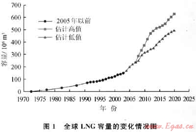 由于進(jìn)口LNG有助于能源消費(fèi)國(guó)實(shí)現(xiàn)能源供應(yīng)的多元化,保障能源安全;而出口LNG有助于天然氣資源國(guó)有效開發(fā)生產(chǎn)天然氣,增加收入,促進(jìn)國(guó)民經(jīng)濟(jì)的發(fā)展。因此LNG國(guó)際貿(mào)易已成為全球能源市場(chǎng)的一個(gè)熱點(diǎn),其貿(mào)易量也連年高速增長(zhǎng),LNG已成為全球增長(zhǎng)最迅猛的能源產(chǎn)業(yè)之一。