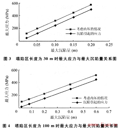 2 管道穿過沉陷區(qū)的內(nèi)力分析