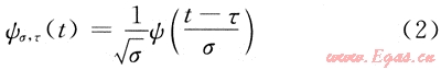 當(dāng)σ越大時(shí),ψσ,τ(t)伸展越寬、波形越肥胖、主頻越低。當(dāng)σ越小,ψσ,τ(t)在時(shí)間軸上壓縮越強(qiáng)、波形越窄、主頻越高。ψσ,τ(t)是由小波母函數(shù)ψ(t)∈L2(R)在時(shí)間軸上經(jīng)伸縮與平移得到的[9],即