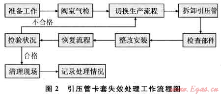 在對隱患原因進行全面統(tǒng)計分析的基礎(chǔ)上,制訂了嚴(yán)格的引壓管卡套失效處理技術(shù)方案。引壓管卡套失效處理工作流程圖如圖2所示。