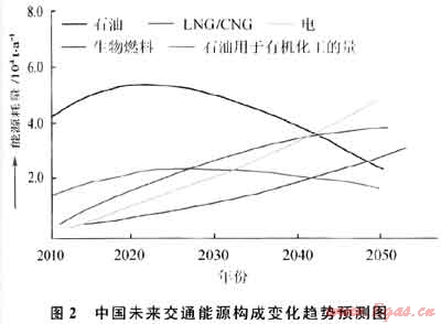 在向低碳能源轉(zhuǎn)型的歷史時期,目前還占世界一次能源消費(fèi)首位(35%)、主要用于交通燃料的石油大部分將在2050年被其他低碳清潔能源所替代。圖2是中國未來交通能源構(gòu)成變化趨勢預(yù)測圖。事實上,2011年3月21日歐盟委員會已向歐洲議會提出了“2050年禁止使用汽柴油車,2030年汽柴油車使用減半”的法案。IEA估計生物燃料將于2040年成為主力航空燃料,到2050年其應(yīng)用將占全球運(yùn)輸業(yè)的25%。國際天然氣汽車協(xié)會預(yù)計世界天然氣交通工具將以年增17.8%的速度增長,到2020年將達(dá)6500萬輛,約為2005年汽車總量的9%。隨著科技進(jìn)步的加速,上述轉(zhuǎn)型的進(jìn)程很可能還將加快。