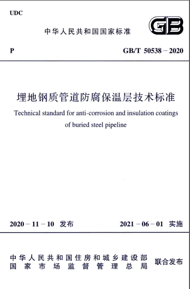 埋地鋼質(zhì)管道防腐保溫層技術(shù)標(biāo)準(zhǔn)國(guó)標(biāo)/T 50538-2020