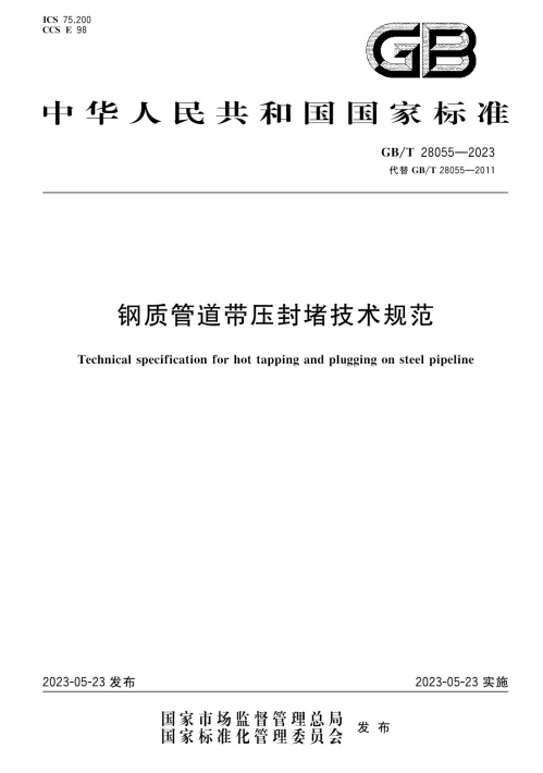 本文件代替 GB/T 28055-2011《鋼質(zhì)管道帶壓封堵技術(shù)規(guī)范》與 GB/T 28055-2011 相比,除結(jié)構(gòu)調(diào)整和編輯性改動外,主要技術(shù)變化如下: