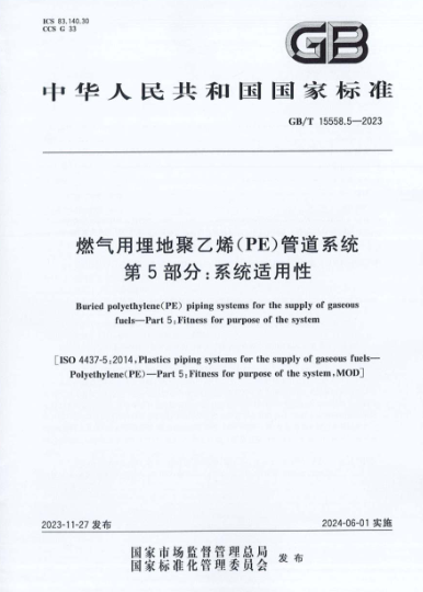 燃氣用埋地聚乙烯(PE)管道系統(tǒng) 第5部分:系統(tǒng)適用性GB/T 15558.5-2023