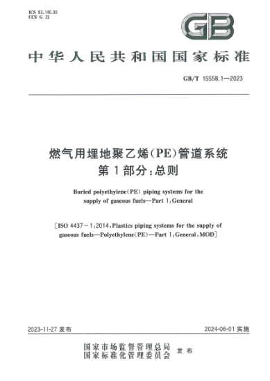 燃?xì)庥寐竦?a href=http://m.chinadayunshuju.com/e/tags/?tagname=%E8%81%9A%E4%B9%99%E7%83%AF target=_blank class=infotextkey>聚乙烯(PE)管道系統(tǒng) 第1部分:總則GB/T 15558.1-2023